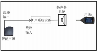 对场景2,预先录制公告的扩声系统如图4所示。如果扩声系统不含系统传声器而是直接通过播放器播放音频,则需要通过外部信号发生器(智能声源线路输出)将STIPA信号输入至系统中,通过调节扩音系统持续播放大小可调的STIPA测试信号。测量时,扩声系统处于最高可用增益工作状态,测试信号通过扩声调音台线路输入扩声系统,扩声系统处于稳定工作状态。